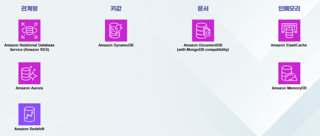 AWS ๋ฐ์ดํฐ๋ฒ ์ด์ค ์๋น์ค ์ข ๋ฅ