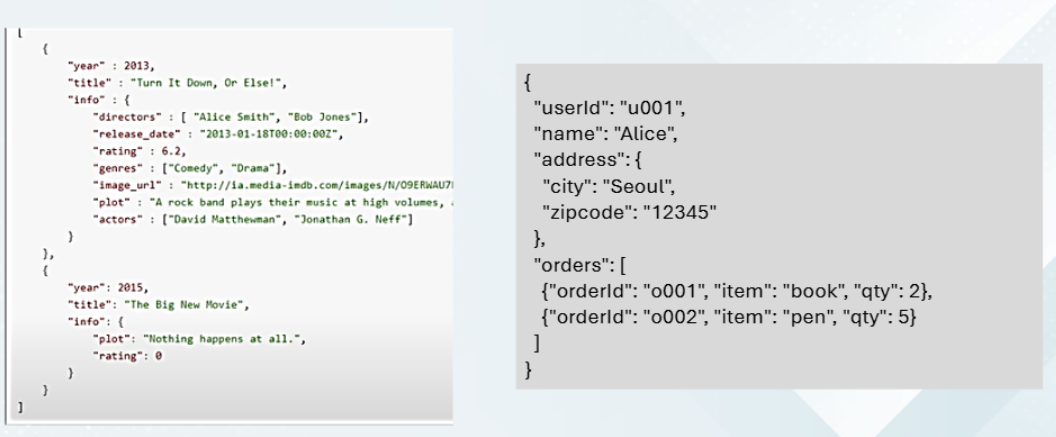 ๐๋ฌธ์ ๋ฐ์ดํฐ๋ฒ ์ด์ค (Document DB):JSON