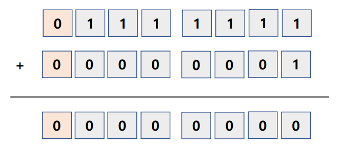 위 그림은 8비트 시스템에서 최댓값을 초과했을 때 발생하는 오버플로우이다.