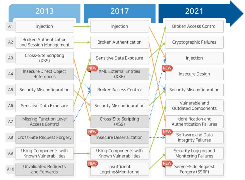 📚OWASP(Open Web Application Security Project): 웹 애플리케이션의 보안 강화를 위해 가장 치명적인 보안 취약점 10가지를 정리한 OWASP Top 10을 주기적으로 발표