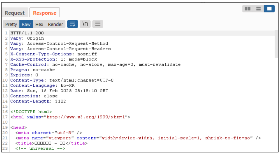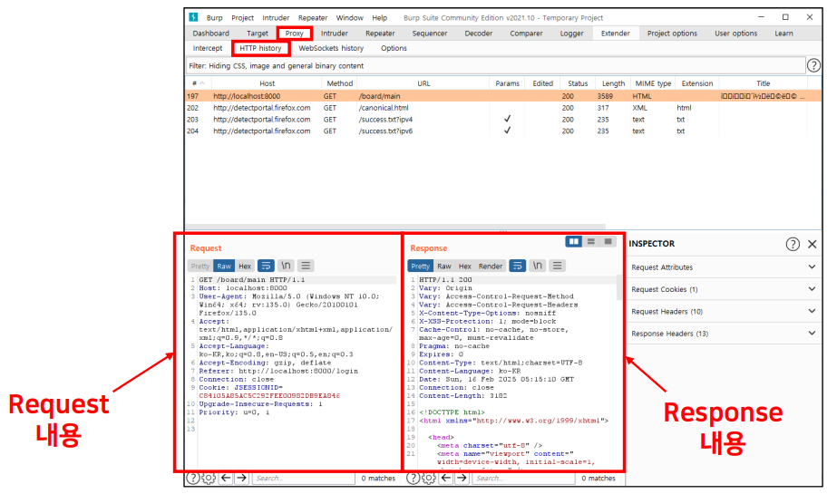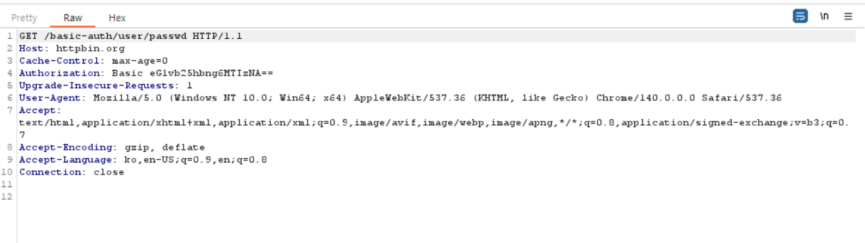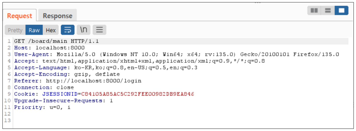 버튼 - BurpSuite Intercept 화면에 Request 내용이 보임 HTTP Request의 Header 내용 중
