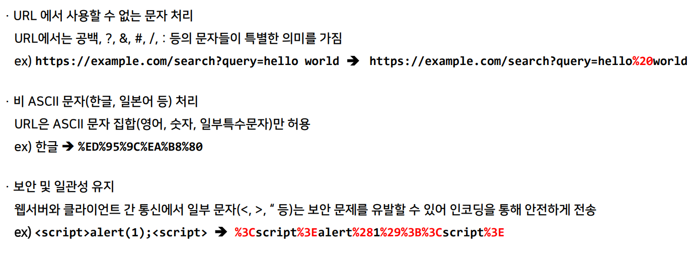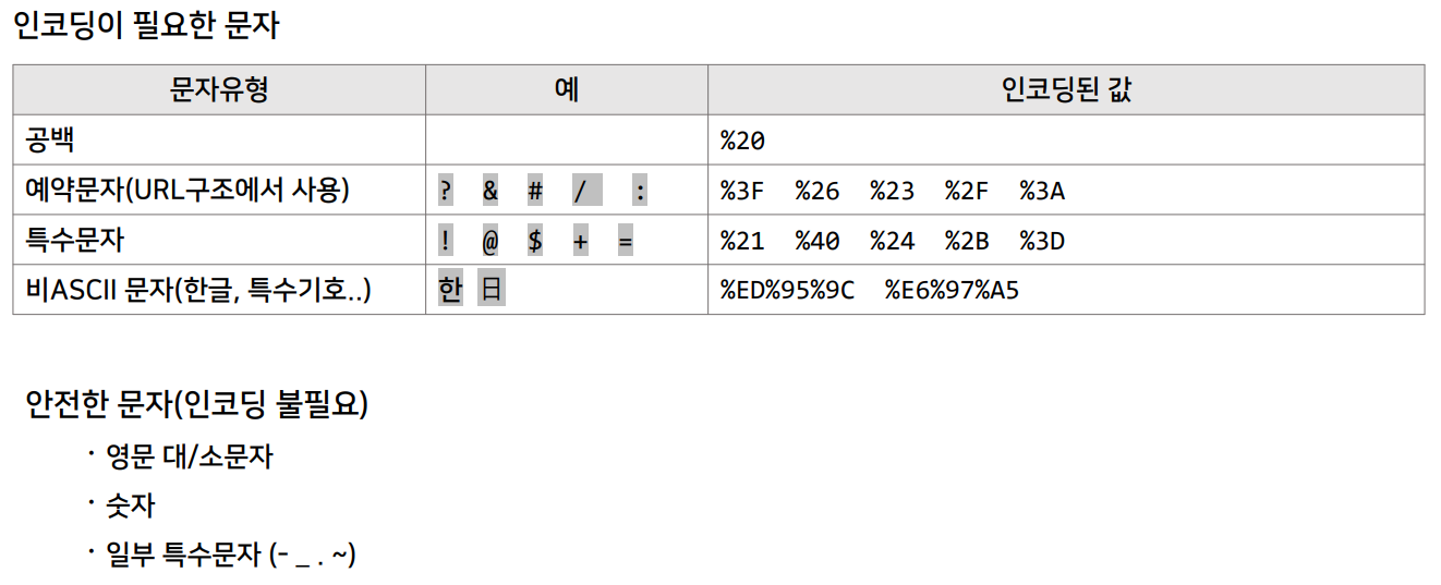 📚URL 인코딩: URL에서 사용할 수 없거나 특별한 의미를 가진 문자들을 %