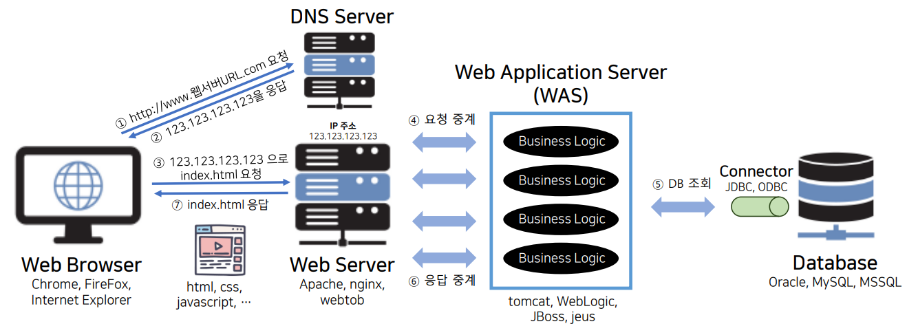 - 요청(Request)/응답(Response) 구조: 클라이언트가 요청하면 서버가 응답