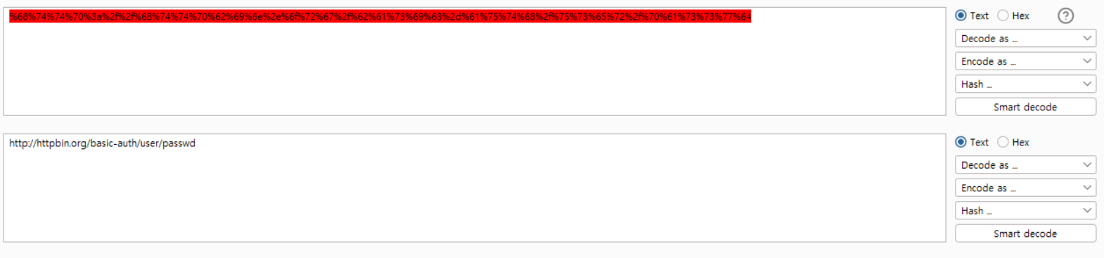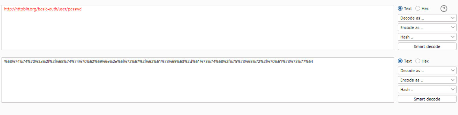 - 앞서 접속했던 사이트 주소를 입력창에 넣고 ‘Encode as …’ 선택 종류 중 ‘URL’ 선택