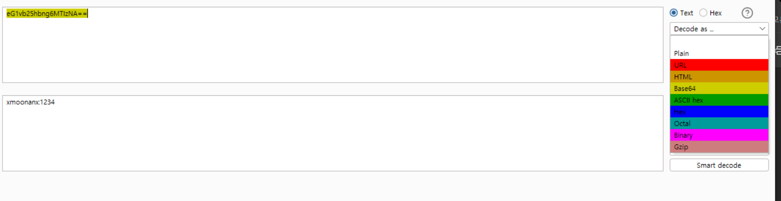 선택 - 하단에 디코딩된 문자열이 출력됨