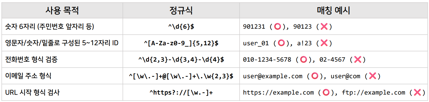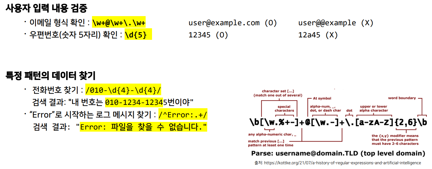 - 다양한 프로그래밍 언어에서 지원하며, 입력 검증, 데이터 추출, 문자열 변환 등에 활용