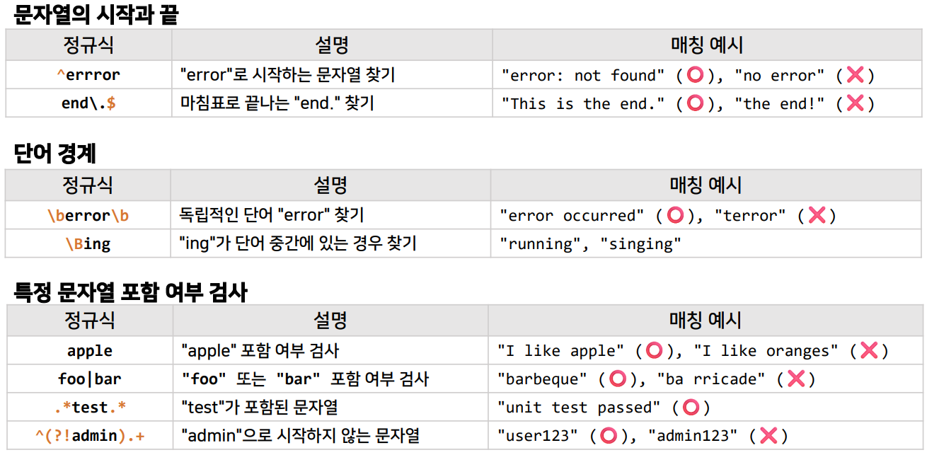 - 로그 분석: 서버 로그에서 특정 패턴을 포함한 로그 검색