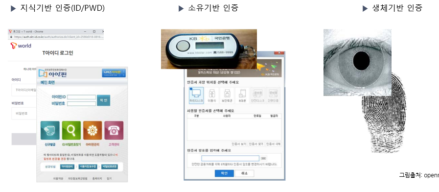 - 지식기반 인증(ID/PW) - 가장 널리 사용됨
