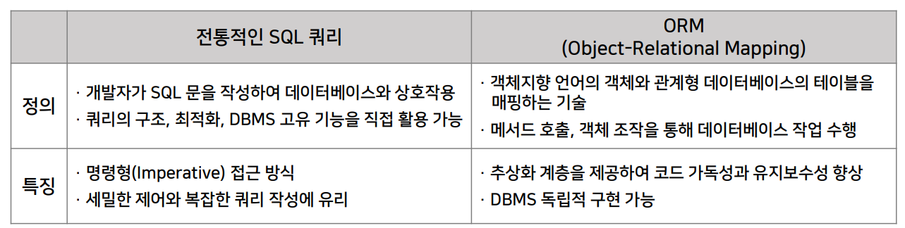์ ํต์ SQL ์ฟผ๋ฆฌ VS ORM ๋น๊ต