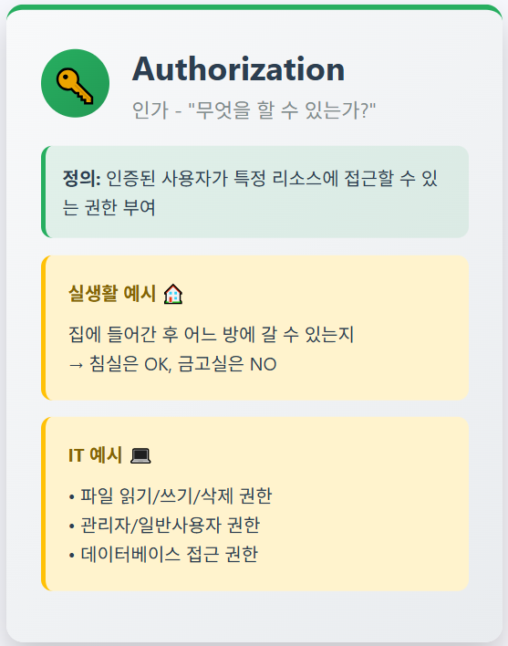 ๐Authorization (์ธ๊ฐ/๊ถํ๋ถ์ฌ): ์์คํ ๊ฐ์ฒด๊ฐ ์์คํ ๋ฆฌ์์ค์ ์ ๊ทผํ ์ ์๋ ๊ถํ์ด๋ ํ๊ฐ